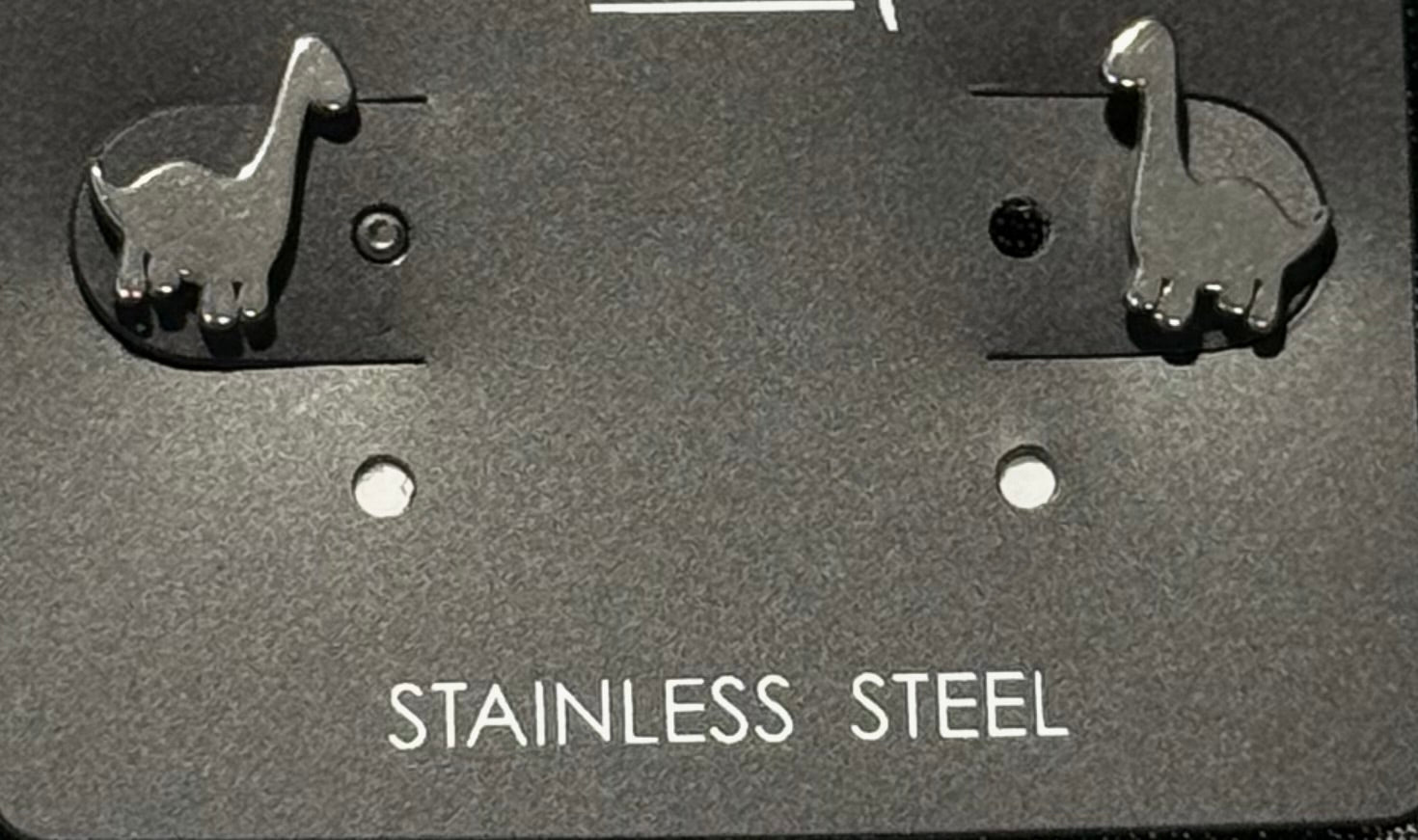 These stainless steel dinosaur earrings are a fun and unique accessory that adds a playful touch to any look. Featuring intricately designed dinosaur shapes, these earrings combine a love for prehistoric creatures with sleek, modern style. Made from high-quality stainless steel, they are durable, hypoallergenic, and resistant to tarnish, ensuring long-lasting wear. Whether you're a fan of dinosaurs or just looking for a quirky accessory to make a statement, these earrings are sure to stand out and bring a bit of fun to your outfit.