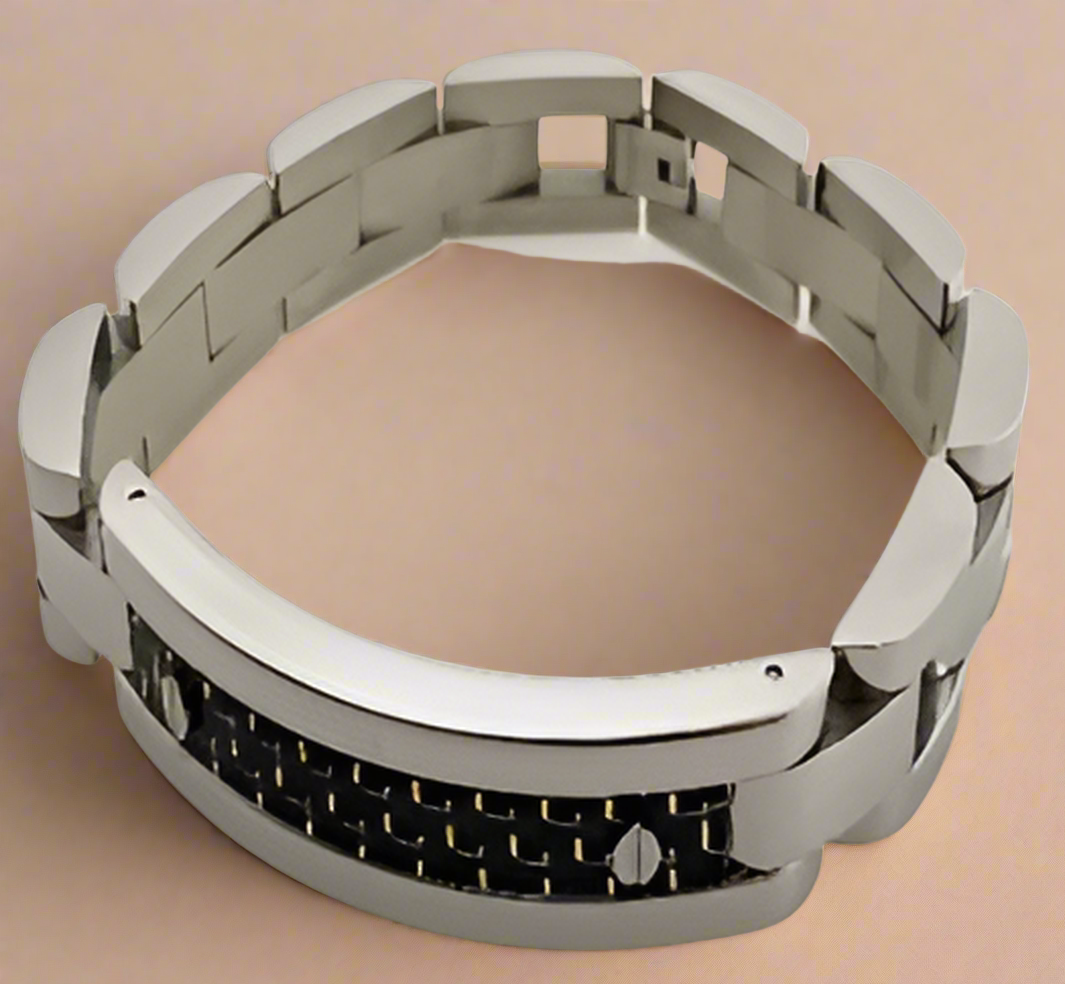 This elegant Fashion Black and Gold Bar Bracelet is a must-have accessory for any stylish individual. Crafted with high-quality materials, this 8.5" bracelet adds a touch of sophistication to any outfit. Its sleek design and trendy colors make it a versatile piece that can be worn for any occasion. Elevate your fashion game with this stunning bracelet.