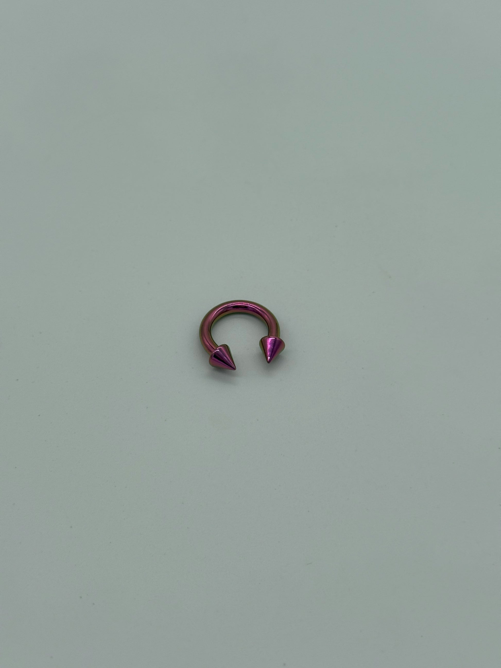 Add a bold pop of shine with this chrome pink titanium horseshoe piercing ring featuring sleek 5mm cone ends. Perfect for septum, nose, eyebrow, tragus, or cartilage piercings, it delivers a vibrant metallic finish that stands out. Crafted from high-quality titanium, it’s lightweight, hypoallergenic, and built for comfort and durability—ideal for everyday wear with a trendy edge.