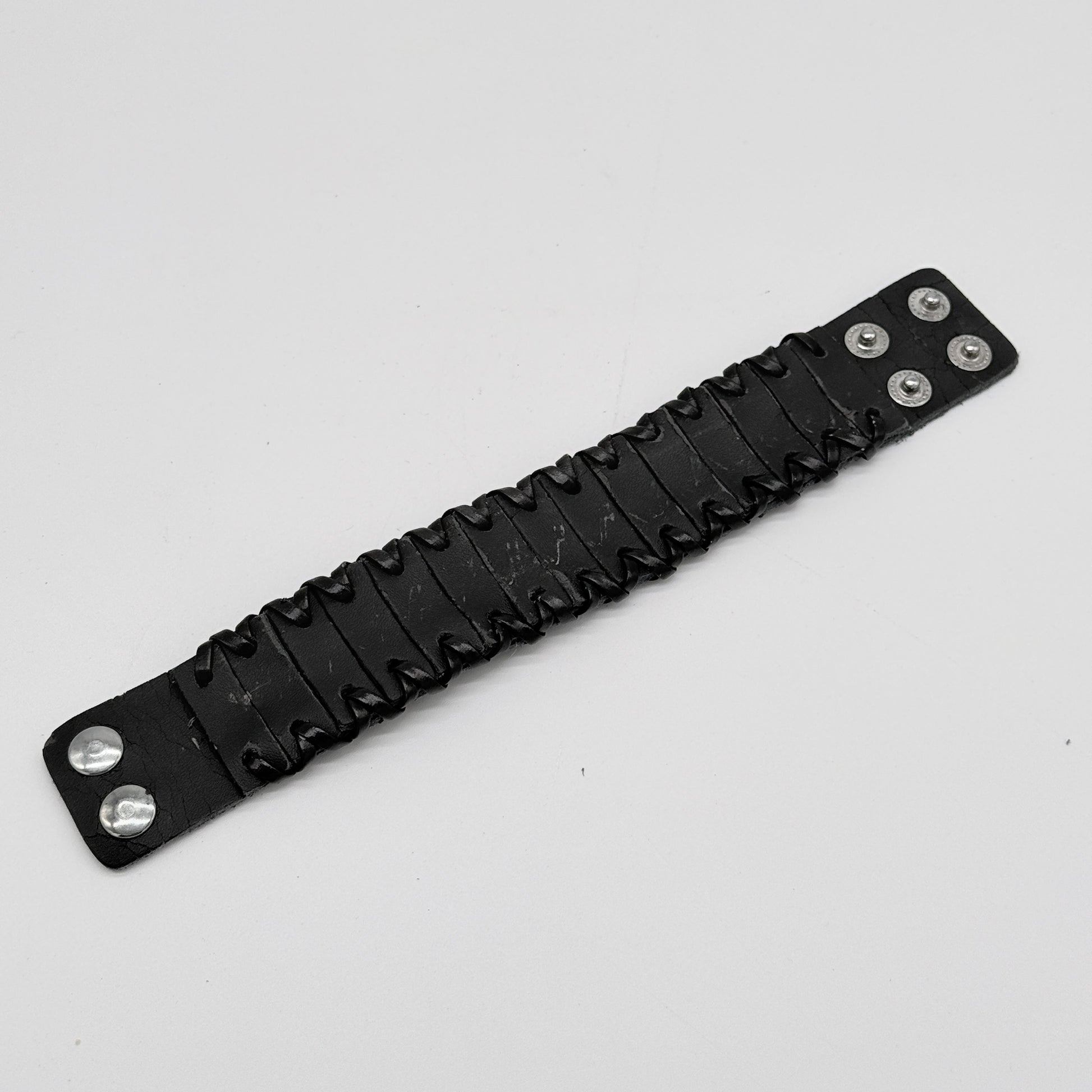 Crafted from reinforced industrial-grade black leather, the Ironclad Cuff combines rugged utility with minimalist luxury. Deep-channeled ribbing and hand-stitched details ensure absolute durability. Quad-point stainless steel snap closures offer a secure, custom fit, while the low-profile silhouette projects confident masculinity. A statement cuff designed for the modern vanguard. SKU No. 80064