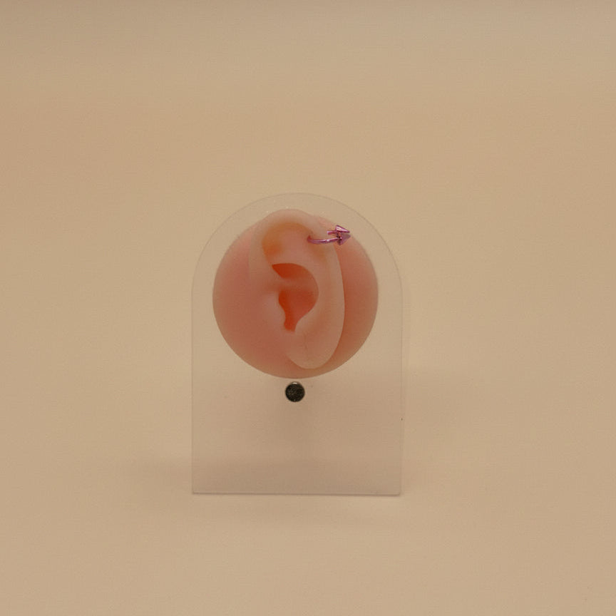Bring a soft, feminine glow to your style with this light pink titanium horseshoe piercing ring featuring 5mm cone ends. Ideal for septum, nose, eyebrow, tragus, or cartilage piercings, it adds a subtle pop of color with a polished metallic finish. Crafted from premium titanium, it’s hypoallergenic, durable, and lightweight—perfect for both daily wear and special looks.