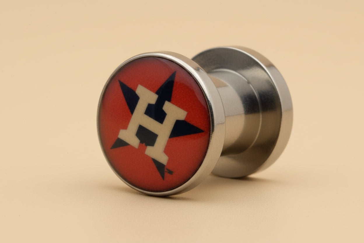 Celebrate your team pride with these officially licensed MLB Houston Astros Screw-Fit Ear Plugs. Made from high-quality surgical stainless steel, each plug features the Astros’ bold star “H” logo on a vivid orange background. The screw-fit design ensures a secure and comfortable wear, while the 2G (6 mm) size adds a sleek, sporty edge — perfect for true Astros fans who want to show their support in style.