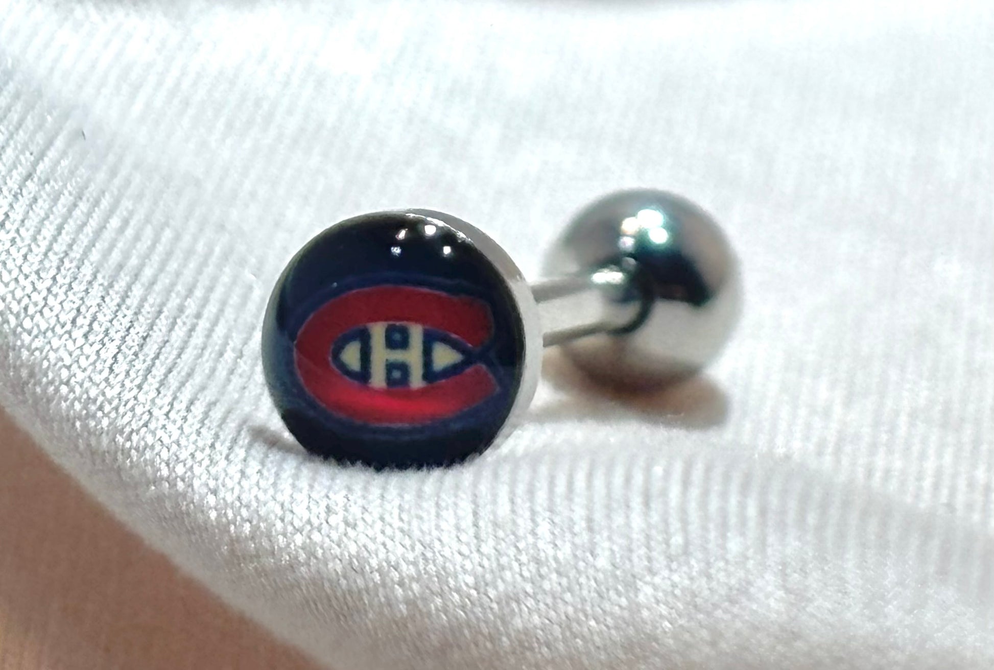 Show off your Canadiens pride with this titanium tongue ring featuring the team’s iconic 3D logo in bold red, white, and blue. Crafted for comfort and long-lasting wear, this barbell is perfect for dedicated Montreal fans who want to represent their team with a stylish and sporty piercing accessory.