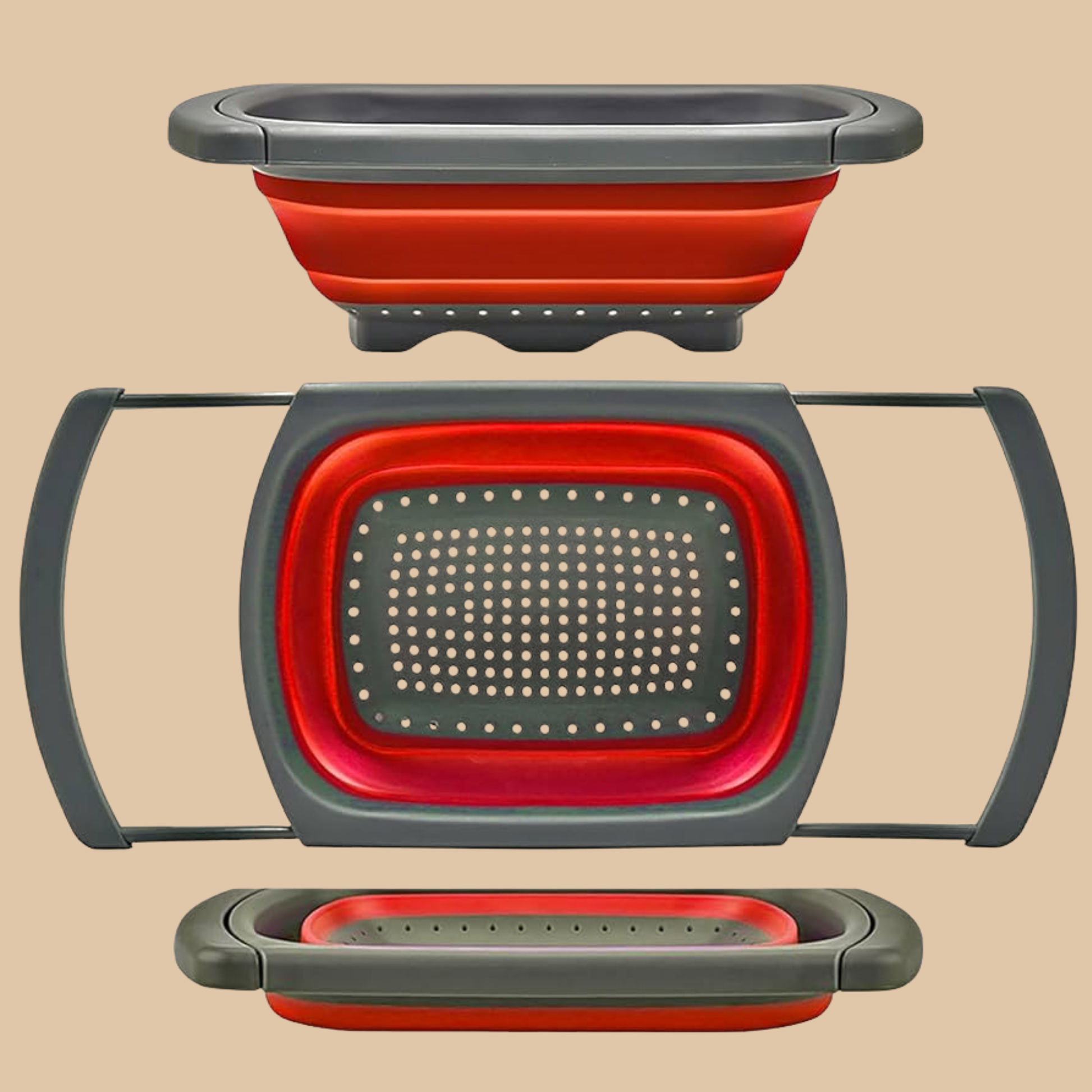 Over-the-Sink Collapsible Strainer & Colander (Red & Gray)