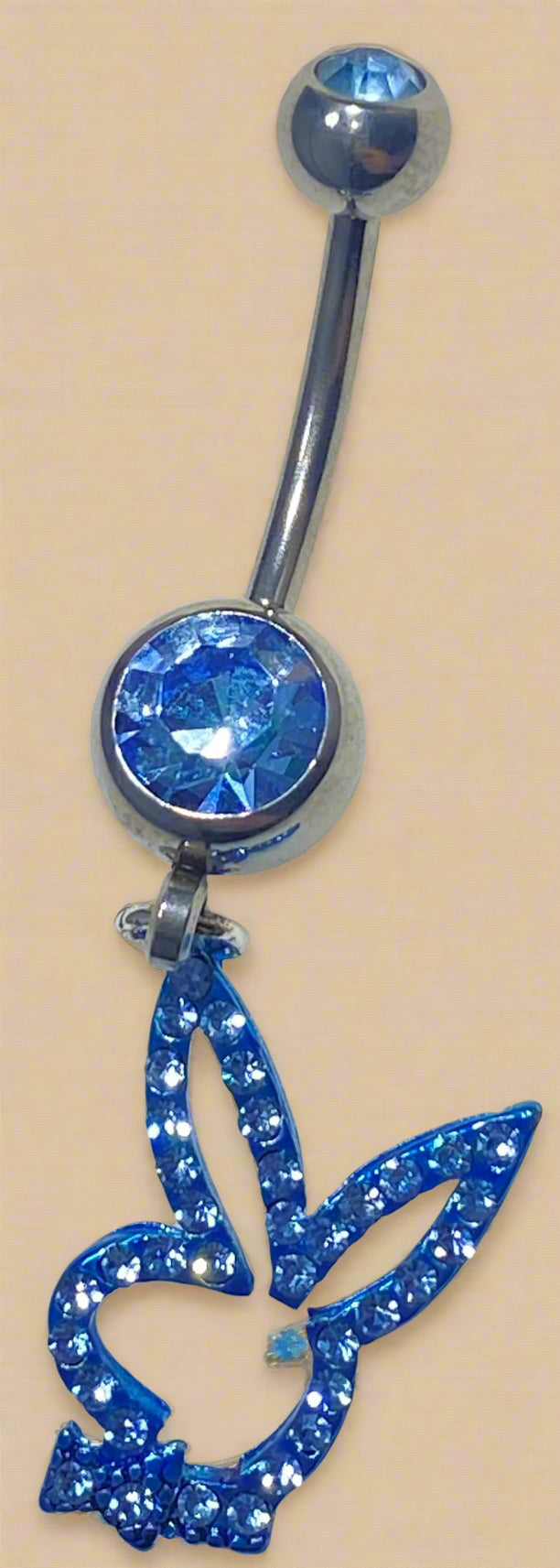 Playboy Blue Crystal Bunny Head Belly Ring Stainless Steel
