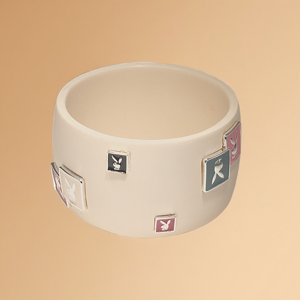 Playboy Bunny 1.75" Wide Bangle Bracelet - Pink w/ enameled metal plaques