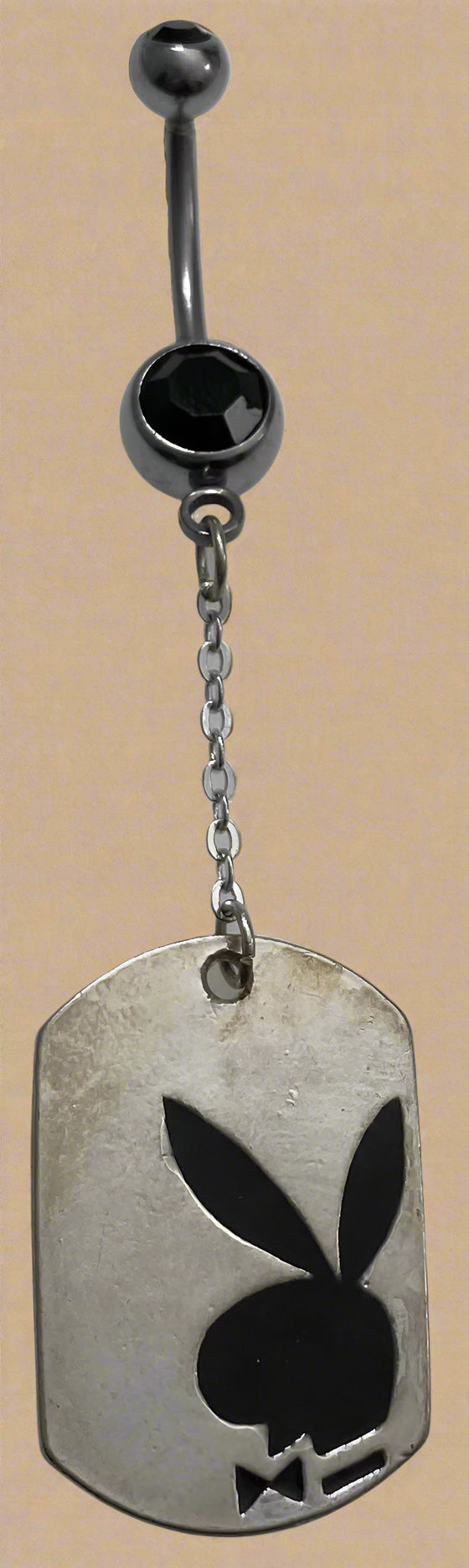 Playboy Dog Tag with Black Crystal & Bunny Head Belly Ring Stainless Steel