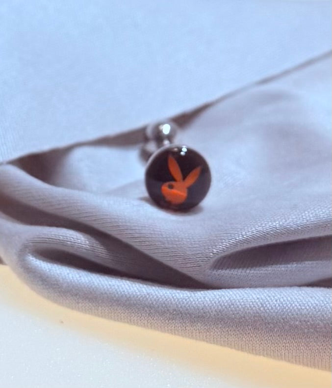 Turn up the heat with this bold Playboy tongue barbell, featuring a black acrylic dome top with a vivid red bunny logo. Made from surgical-grade stainless steel for safe, durable wear, this piece blends iconic branding with a sleek, rebellious vibe—perfect for expressive, confident styles.