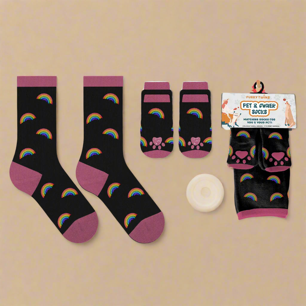 Matching rainbow sock set for pet and owner