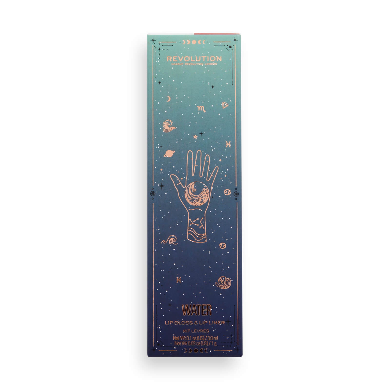The Revolution Fantasy Water Lip Kit combines celestial style with down-to-earth beauty in a dreamy lip gloss and liner duo inspired by the water element. Featuring cool-toned, hydrating gloss and a creamy, precise liner, this vegan, cruelty-free set offers a smooth, radiant finish and comes in a cosmic-themed case—perfect for channeling your inner mystic with every swipe.