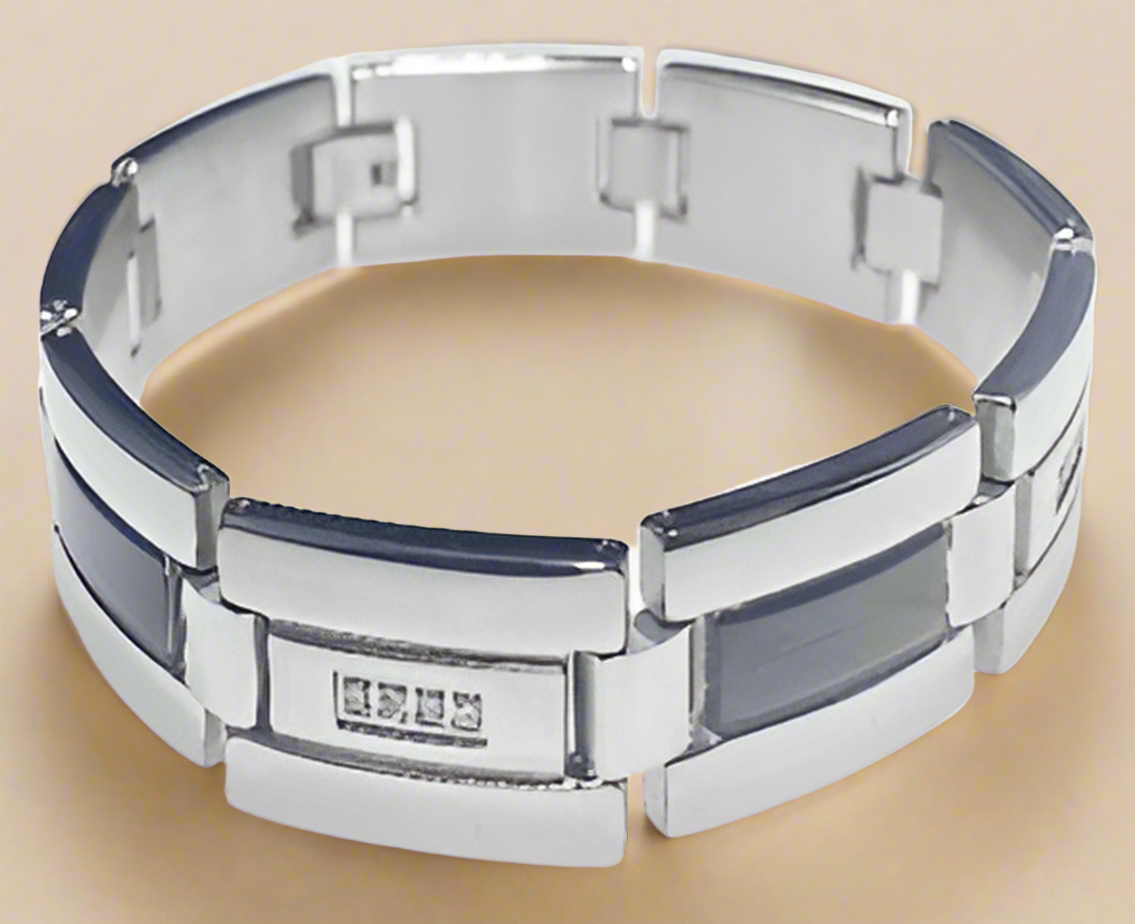 Fashion Black with Diamond in Bar Bracelet 8.5"