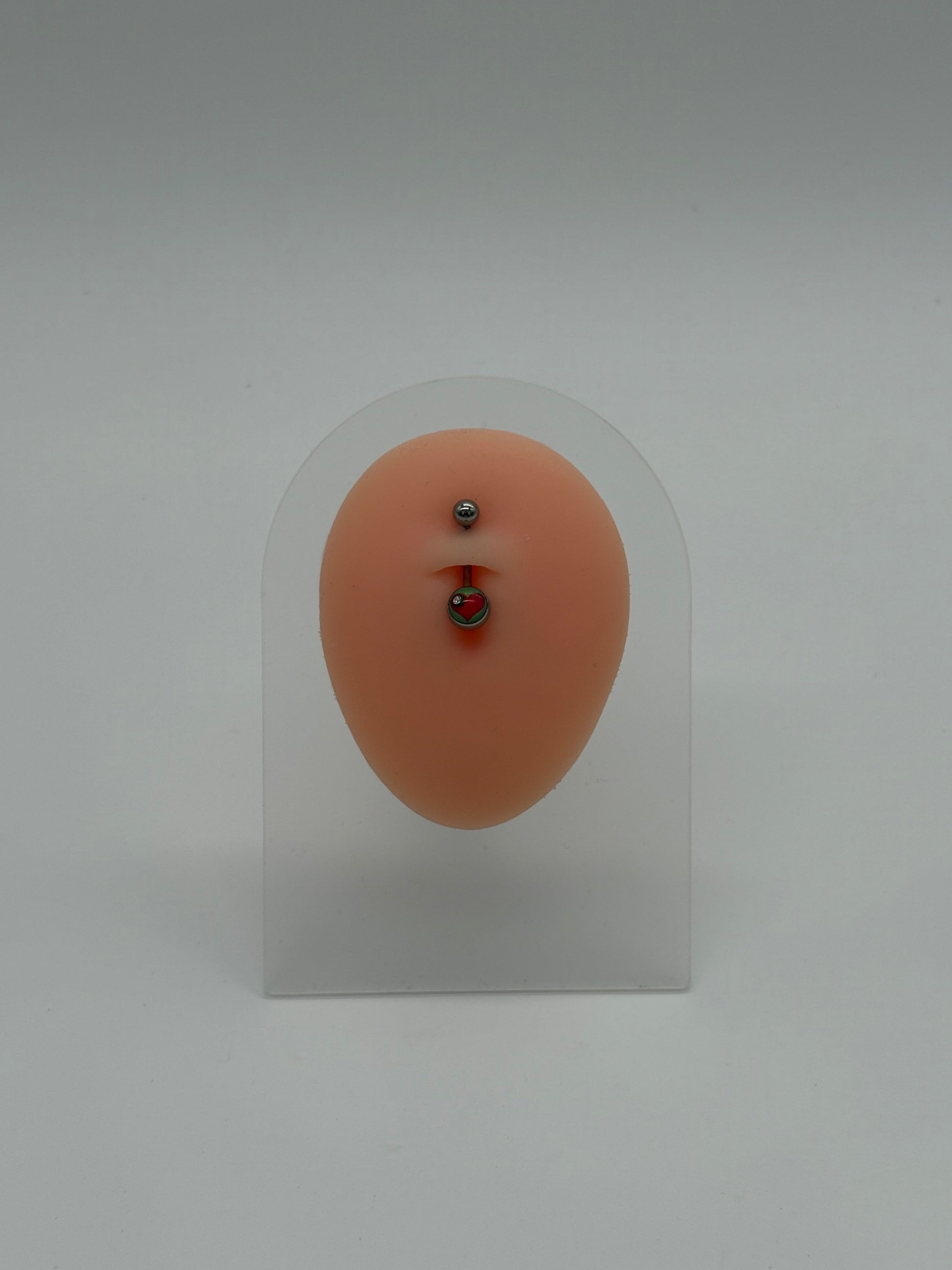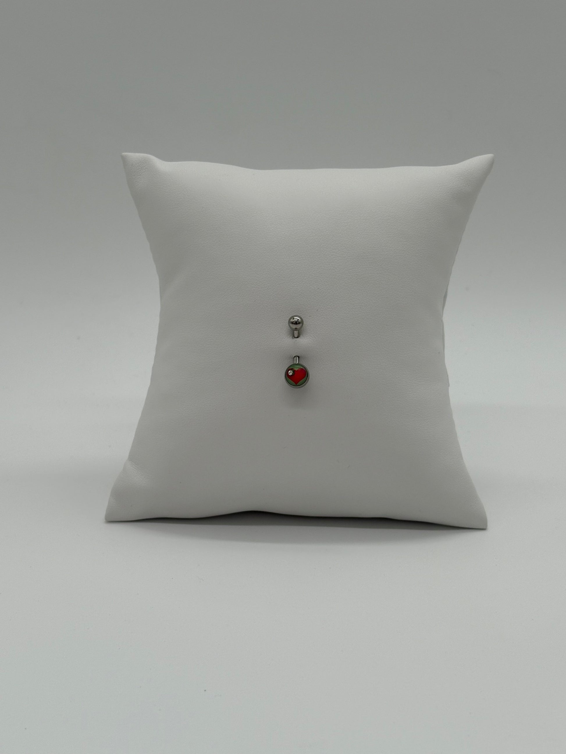 Express your romantic side with this titanium belly button ring featuring a charming heart logo design. The glossy red accent adds a bold pop of color, while the polished titanium finish ensures a sleek and durable look. Hypoallergenic and comfortable for daily wear, it’s the perfect piece to show off your sweet yet confident style.