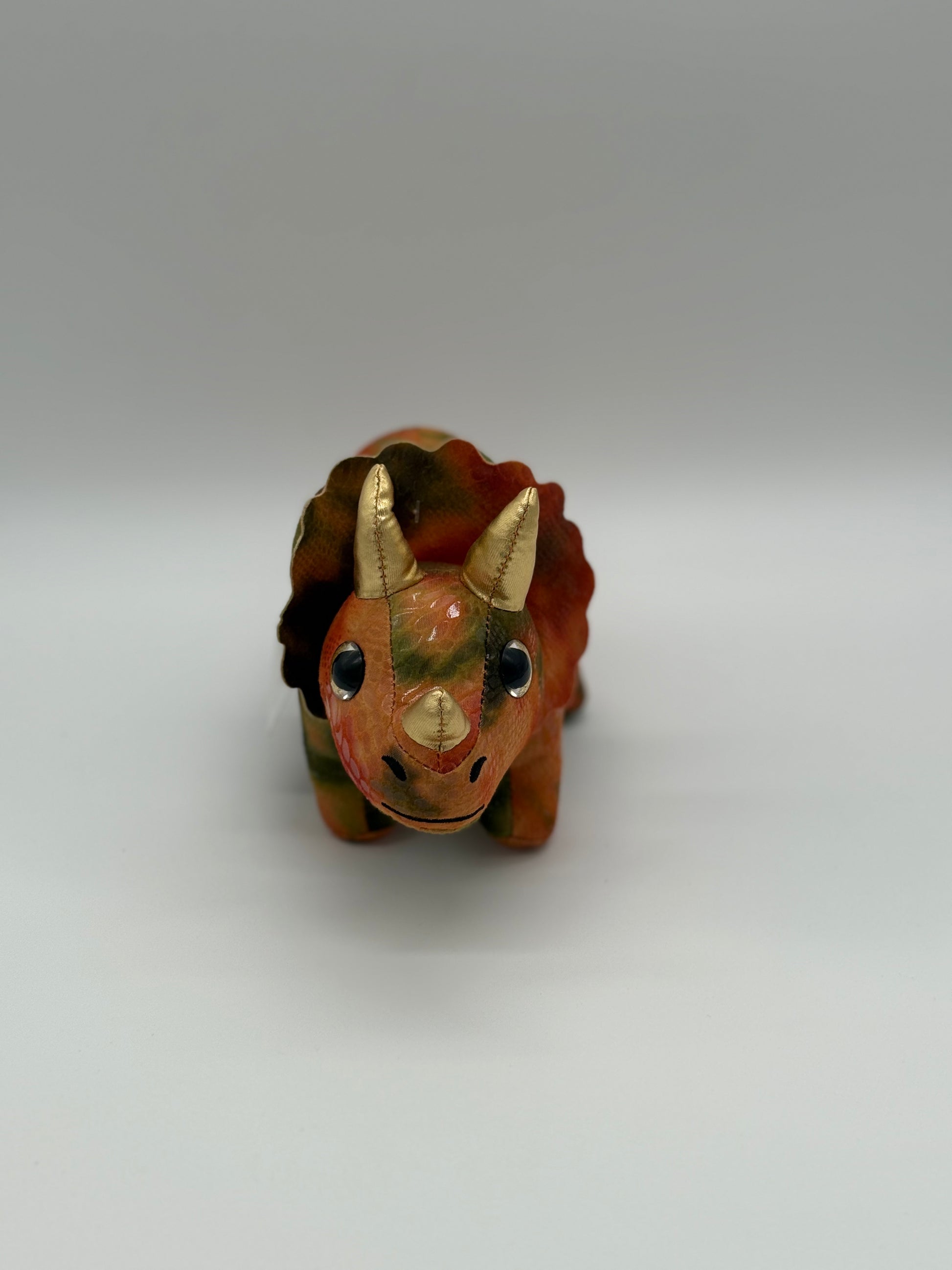 This medium-sized triceratops plush is both soft and endearing, made from premium cotton fabric for a cozy, cuddly feel. Its realistic yet friendly design sparks imaginative play while serving as a charming décor piece. Perfect for children and collectors, this plush dinosaur is an ideal gift for any dinosaur enthusiast.